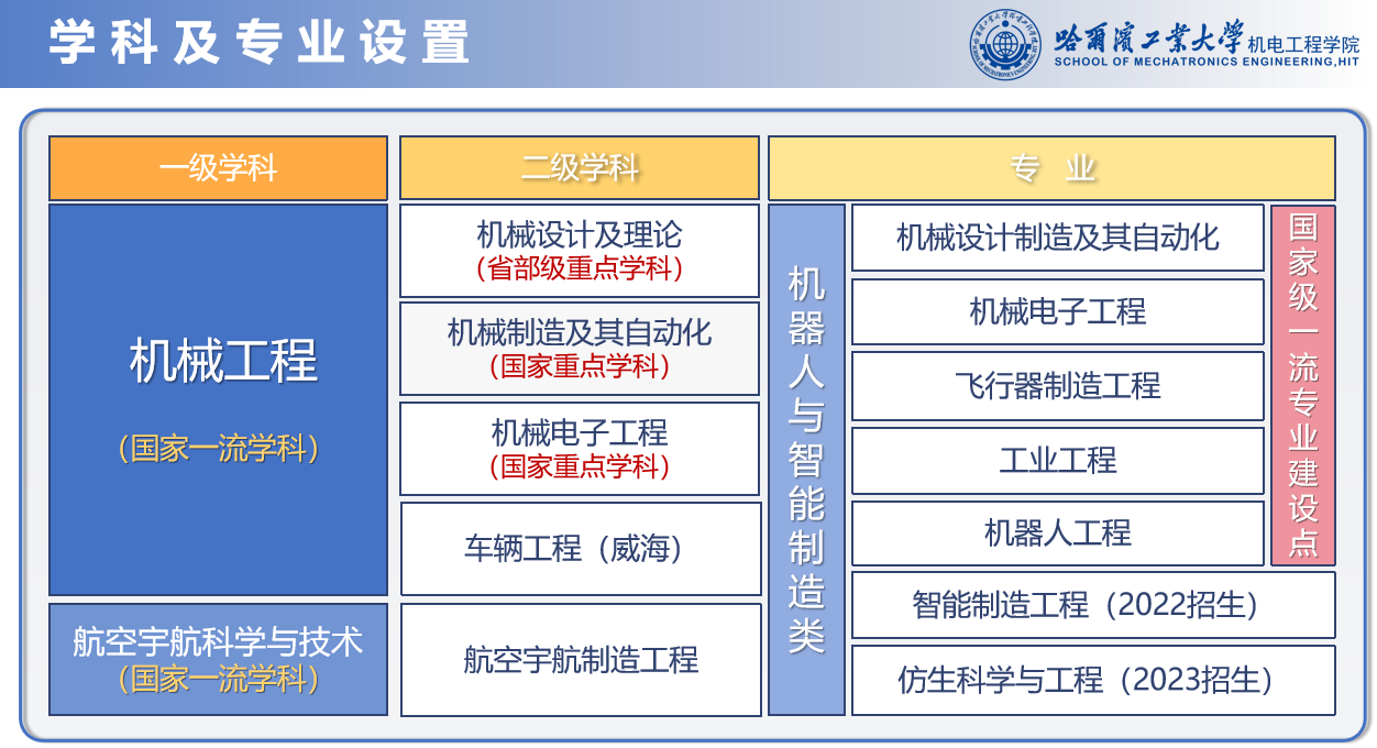 欧美色情片秉承哈工大“规格严格,功夫到家”的校训传统,坚持“育人为本、求实创新”的办学理念,在学科建设、人才培养、科研攻关等方面不断改革创新、锐意进取、追求卓越,为国家培养输送了数以万计的各行业骨干精英,培养出十余位中国工程院院士、百余名国家级人才等高端人才,200余位校友在航天、国防等领域的重大型号项目中担任总指挥、总设计师、主任/副主任设计师。以建设世界一流机械工程学科为目标,欧美色情片“立足航天、服务国防、面向国家重大需求”,打造了一批国之重器,培养了一批杰出人才,在智能机器人、深空探测、在轨服务等前沿领域研究水平国际领先,为我国机械工程学科发展与航天国防事业建设做出了突出贡献。